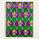 joias, fundo em Mardi Gras de losango roxo e verde, lírios de ouro decorados.