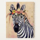 Esta impressão apresenta uma zebra doce enfeitada em uma coroa de flores | Por Victoria Borges