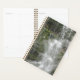 A foto mostra uma bela cachoeira cercada por árvores verdes e rochas. A água é clara e azul, e cai de um penhasco alto para uma piscina abaixo. O céu é nublado e cinza, criando um contraste com as cores brilhantes da natureza. Foto tirada em velocidade lenta para congelar a água. 100% personalizável. Clique no botão PERSONALIZAR para adicionar, mover, excluir, redimensionar ou alterar qualquer uma das fontes ou gráficos.