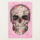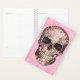O crânio rosa está cheio de belas margaridas e rosas. O fundo é um adorável efeito rochoso rosa.