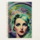 Agenda Linda Lavanda e Estilo Retro Verde Mulher Espacial