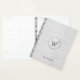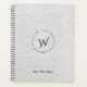 Um belo design de monograma usando seu nome e inicial em forma de círculo clássico. Uma textura de linha falsa de cinza no fundo com sotaques pretos cria um estilo único. Personalize o monograma e o texto e torne-o seu. Material de papelaria ideal e material escolar. Outras cores de linho oferecidas nesta design.