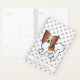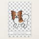 A ilustração original do desenho de Destei de um cão da raça Papillon, casaco, de cor vermelha e branca. Há também uma área de texto personalizável para um nome ou título. O fundo tem um padrão de estampas de pata de cachorro.
