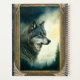 Este lobo assombroso aparece de uma noite iluminada. Imagem assistida por IA adquirida com uso comercial. Trabalho de arte: RavenPrintableDesign