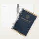 Planeje suas metas de negócios em estilo com este sofisticado design de planejador personalizado. Um rico pano de fundo azul-marinho é belamente acentuado com detalhes ousados de folha de ouro, criando um eterno e uma estética elegante.
