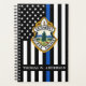 Planeador do Departamento de Polícia de Linha Azul - bandeira americana em cores de bandeira policial, design moderno preto e azul. Personalize com o logotipo do seu departamento e personalize com o nome dos policiais. Este planejador de polícias personalizado é perfeito para departamentos de polícia e polícias. COPYRIGHT © 2020 Judy Burrows, Black Dog Art - Todos Os Direitos Reservados. Logotipo Personalizado do Departamento de Polícia - Planejador de Linha Azul Fino
