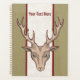 Este planejador é listrado em branco-bronzeado e vermelho-lenhoso com uma cabeça de cervo macho-marrom com um rosto preto gravado e grandes galhadas. Personalize seu texto na frente com o modelo.
