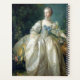 Uma bela pintura a óleo de Madame Bergeret em um elegante vestido de cetim com foco em um bonito arco azul pastel. O rico fundo natural evoca um cenário de jardim pacífico de uma era passada. Ao jardim dá-se uma sensação indomada com rosas cor-de-rosa espalhadas na pintura criando harmonia com rosas colocados no vestido e delicadamente na mão.