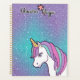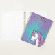 Esta design mostra um unicórnio fofo com cabelo colorido e chifre ouro, parado sobre um cheio brilhante de fundo da magia