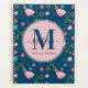 Marinho Chic Azul Pink Borboleta Flor Monograma Planner