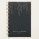 O planejador de chic com uma coluna dourada apresenta uma escrita branca clássica sobre um fundo preto suave e rico, com fios verticais de luzes de cordas de rosa douradas falsas em cascata a partir do topo. Personalize com duas linhas de texto personalizado, fazer este planejador como uma escolha perfeita para negócios, compromissos ou tarefas diárias.