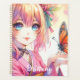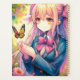 Menina de anime com borboleta Monarca, bonito aquarela, arte para aqueles que amam anime.
