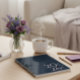 Planeador anual de papelaria pessoal com nome personalizado minimalista e elegante com cobrir azul marinho. Planeador anual (12 meses) com vista a obter uma visão geral mensal aberta e planilhas de planeamento semanais. Personalize este planejador com o seu nome, ano preferido e uma boa citação no fundo.