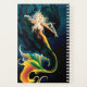 Uma sereia branca com um dragão verde-escuro junto no oceano
