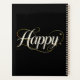 A sleek and elegant "Happy" design featuring ivory lettering accented by thin, sophisticated gold swirls and dots. This minimalist yet classy artwork is perfect for a refined and timeless aesthetic
