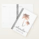 Design de planificador de na moda que apresenta duas palmas de ouro de rosa de cobre elegantes, fundo branco e letra elegante de caligrafia. Personalize o produto com seu nome e detalhes.