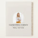 Sleek and minimal real estate notebook planner design featuring a professional arched photo frame and clean typography. Ideal for realtors, brokers, and real estate professionals to keep notes, client details, and property listings organized. This elegant design adds a personal, branded touch — perfect as office stationery, client gifts, or team branding. Fully customizable with your own photo, name, and business details.