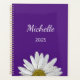 Planeador floral roxo moderno de 2025, com uma margarida branca e design elegante de roteiro. Com uma inscrição personalizável branca, você pode adicionar seu próprio nome e ano. Uma maneira moderna de adicionar um toque botânico para se manter organizado.