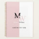 Elevate your wedding organization with this elegant minimalist blush and white monogram planner. Designed with a modern split-color layout, this customizable binder features your initials, names, and personalized text for a truly unique keepsake. Perfect as a wedding planner binder, engagement gift, or bridal shower present, this stylish design adds a touch of sophistication to every detail. Personalize easily to create a meaningful and practical accessory for your special day.