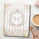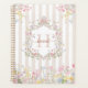 Introducing our Monogram Colorful Floral Rococo Style Stripes Planner. Featuring pretty watercolor flower illustrations in classic style and paster colors with editable texts that can be personalized with your initial and name. Suitable for girls.
