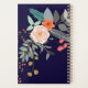 Um spray colorido de flores botânicas gráficas decora esse cobrir de planejador e pode ser personalizado com três iniciais de monograma. O fundo é um marinho azul rico.