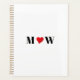 Monograma moderno e fofo de casal personalizado, iniciais elegante personalizado Planejador personalizado personalizado. Iniciais pretas personalizadas, coração vermelho, fundo branco.
