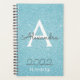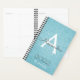2022 Teal Aqua Blue Sparkle Glitter Monograma Name e Planeador Inicial de Notebook Espiral. Isto faz o doce e perfeito aniversário de 16 anos, casamento, chá de panela, aniversário, chá de fraldas ou festa de solteira presente para alguém que ama luxo de luxo e estilos quíticos.