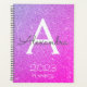2023 Nome do Monograma da Glitter Glitter de Mão Rosa Púrpura e do Planeador Inicial de Notebooks Espirais. Isto faz o doce e perfeito aniversário de 16 anos, casamento, chá de panela, aniversário, chá de fraldas ou festa de solteira presente para alguém que ama luxo de luxo e estilos quíticos.