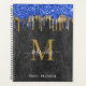 Planejador de calendário monograma personalizado. Mantenha todos os seus compromissos e agendamento à mão com o nosso moderno e elegante azul preto e dourado pingos de brilho no planejador de couro preto com monograma personalizado inicial e nome. Esse planejador exclusivo é perfeito para planejamento de escritório, agenda escolar, compromissos familiares e agendamentos de negócios de trabalho. Veja nossa coleção para combinar suprimentos de casa e do escritório escolar. COPYRIGHT © 2022 Judy Burrows, Black Dog Art - Todos Os Direitos Reservados. Planeador de Monograma de Coleta Dourada Azul Preto
