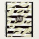 Lindo e glamouroso para ela, esta planejadora apresenta um padrão de imagens de lábio brilhante de ouro claro em um fundo listrado preto e branco. Seu monograma está no centro em ouro claro, colocado sobre uma faixa de círculo preto que também está alinhada em ouro fino. A parte de trás do planejador tem o mesmo padrão sem o banner ou monograma.