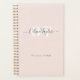 Nome moderno do script chic e design monograma em fundo cor-de-rosa pincelado, simples e elegante, personalize o seu próprio planejador personalizado profissional.