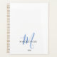 Elegante planejador de Monograma de Script Azul Branco Branco. Um monograma elegante de script azul combinado com uma fonte limpa de san-serif preta faz uma aparência contemporânea.