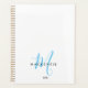 Agenda Monograma de Script Azul do Céu Branco Moderno Ele