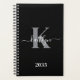 Agenda Monograma de Script de Cinza Negra Moderna