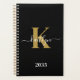 Agenda Monograma de Script Dourado Preto Elegante