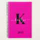 Agenda Monograma de Script Preto Cor-de-Rosa Moderno
