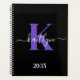 Agenda Monograma de Script Roxo Preto Moderno