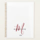 Agenda Monograma de Script Vermelho Branco Moderno Elegan