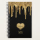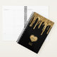 Comece o ano novo com este planejador de 2021. Pingir tinta dourada e brilho dourado com um coração dourado brilhante sobre fundo preto faz uma declaração elegante. Adicione seu monograma e nome para torná-lo seu