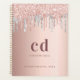 Agenda monograma do rosa dourado da pincelada prateada 20