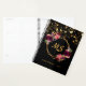 Um fundo preto chic. Decorados com uma falso armação geométrica dourada e flores, florais, cor-de-rosa e rosa. Estrelas douradas falsas pingando. Personalize e adicione suas letras monográficas, iniciais e um texto, título. Perfeito para a escola, o trabalho ou a organização da sua vida pessoal/familiar.