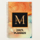 Agenda Monograma Laranja Moderno e Azul Marmoreado