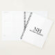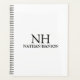 Planejador de negócios moderno, com um design preto e branco simples e mínimo com seu monograma em uma fonte em negrito, junto com seu nome na frente. As costas têm as suas informações de contato.