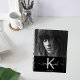 Um fundo preto chic. Personalize e adicione sua própria foto, um nome, uma letra de monograma e um ano. O nome é escrito em branco com um grande estilo escrito à mão com letras grandes e manuscritas com baloiços. A letra do monograma na cinza. Perfeito para a escola, o trabalho ou a organização da sua vida pessoal/familiar. Para manter as hastes apenas apague o nome da amostra, deixe os espaços ou emoji em frente e depois do nome