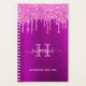 Um fundo roxo profundo, feminino e na moda, com brilho quente, pingos, pingos, pingos. Personalize e adicione seu nome, letra monográfica e um título. Um planejador para organizar clientes de negócios, compromissos, fazer listas ou sua vida diária. O nome é escrito com um grande roteiro escrito à mão com balsas. Para manter as hastes, exclua apenas o nome da amostra, deixe os espaços ou emoji na frente e depois do nome. Rosas claro e letras roxas.