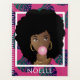 Esta design apresenta uma menina de pele marrom com cabelo natural, pingando uma pastilha elástica rosa, com um quadro branco ao seu redor. Ela está num pano de fundo rosa de folhas tropicais coloridas.