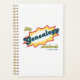Proclaim your genealogy passion to the world with this colorful planner / notebook. The design features a playful, comic-book-inspired style with a retro font set against a dynamic burst shape in yellow and red, reminiscent of vintage superhero graphics. A fun gift for you or someone attending a conference, society meeting, taking a research trip, or researching from home.