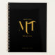 Agenda Na moda preto e Dourado Monograma - Letras iniciai