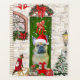 O Natal do Bulldog Francês sentado do lado de fora da casa decorada com coroa de Natal, a árvore de Natal é uma ideia perfeita de presente de Natal para amantes de cachorros.