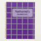 Um padrão lúcido, inspirado na safra, com quadrados roxos arrojados com bordas de cinza nítidas. Este planejador pode ser personalizado com qualquer nome e ano, fazer-o de um presente ponderado ou um organizador pessoal na moda.